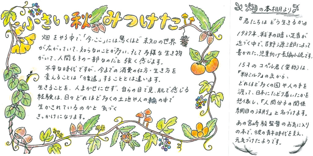 みちくさ便り「小さい秋みつけた」、宮本農園さん、9・10月は秋は果物の季節!、前岡農園の梅干し