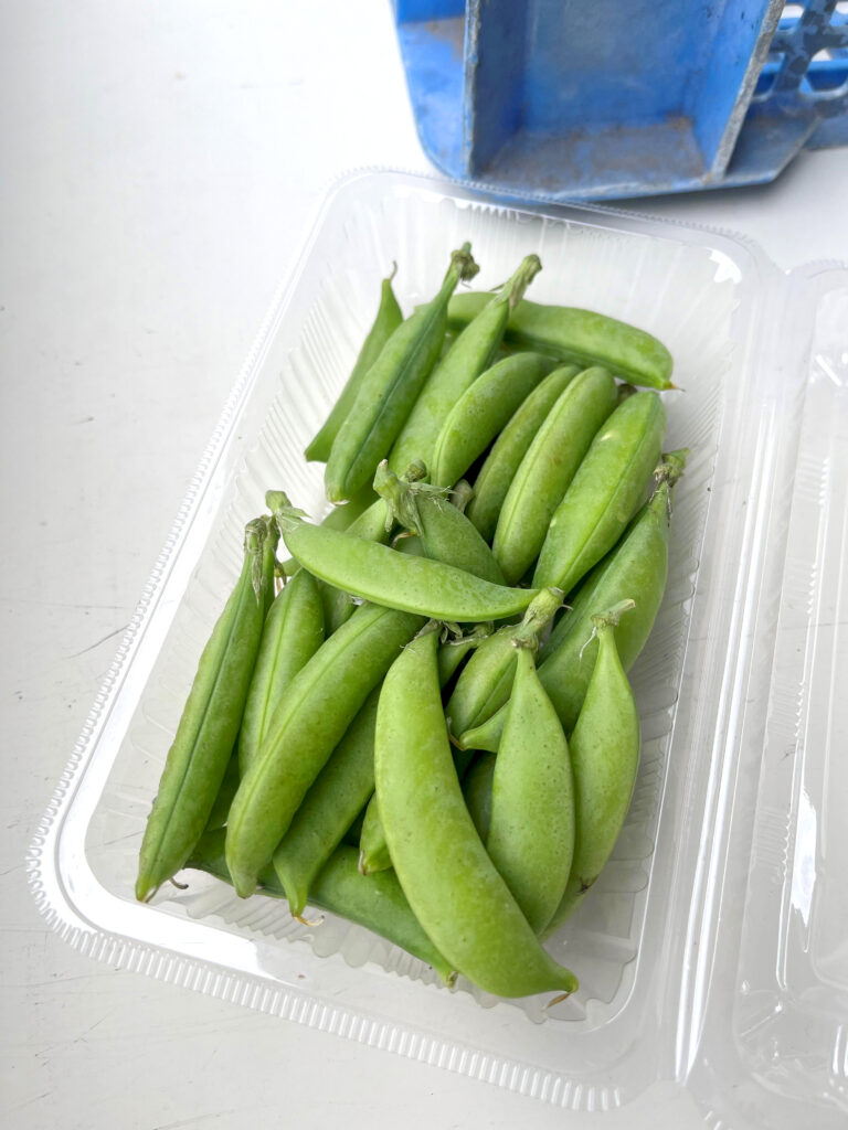 最初は豆!!5-6月にかけては豆の季節、収穫したてのプッチンプッチンの豆がたくさん売り場に並びます。